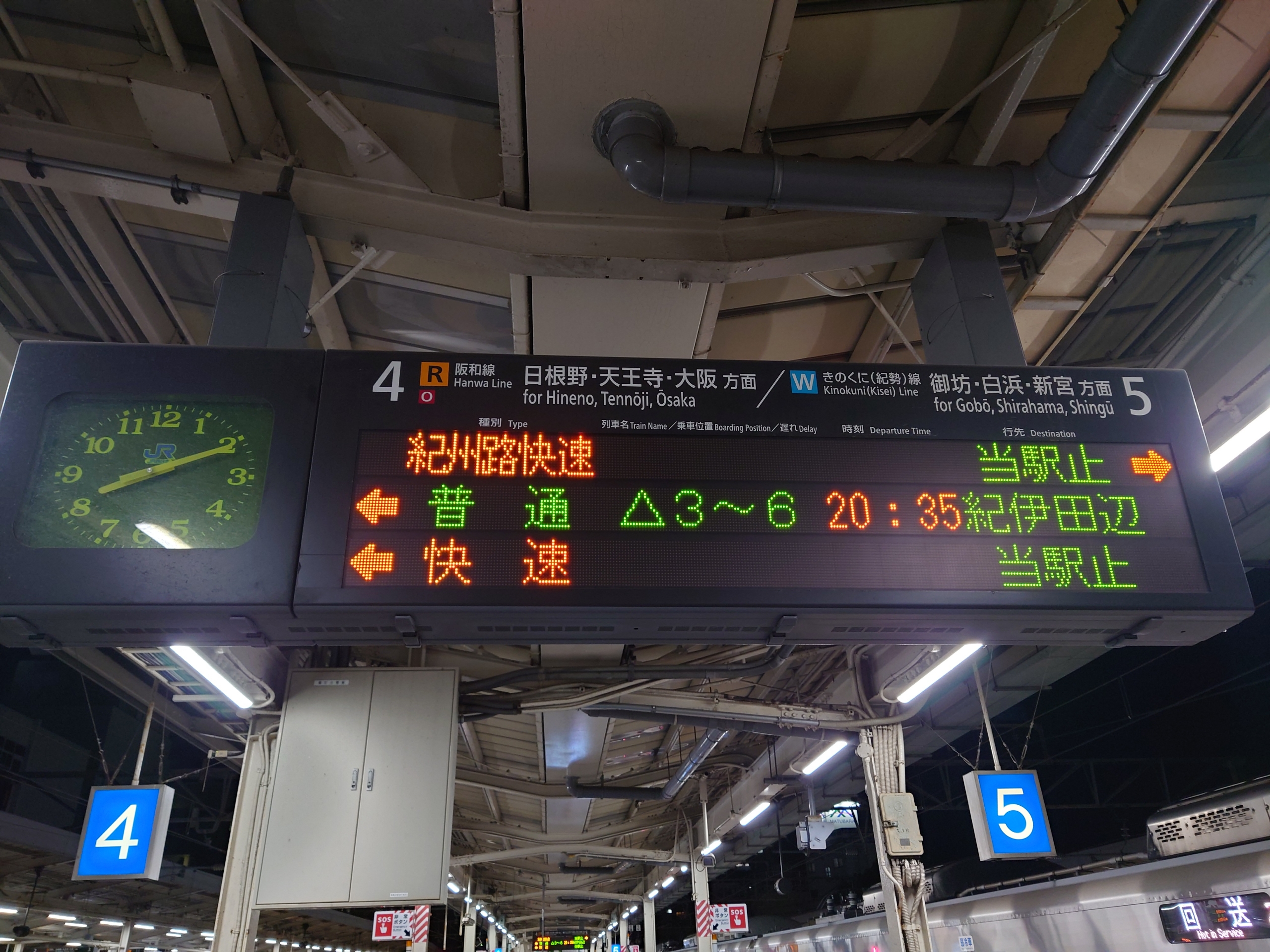 夜に和歌山まで乗った紀州路快速は、5番のりばに到着しましたが、これは所定の番線だったのか、気になるところでした…