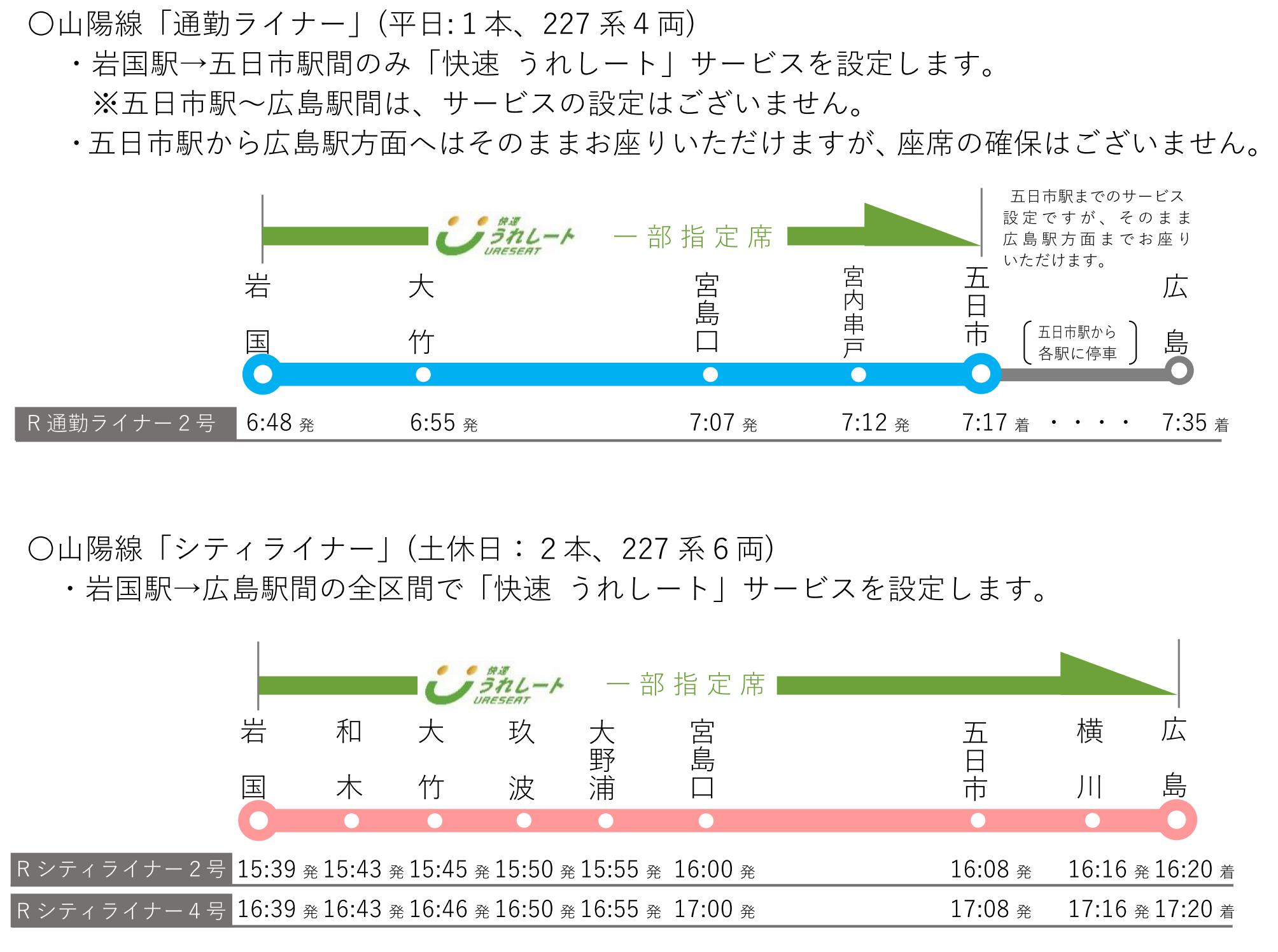 土休日・夕方の広島行き2本に「うれしート」が設定されることとなりました。