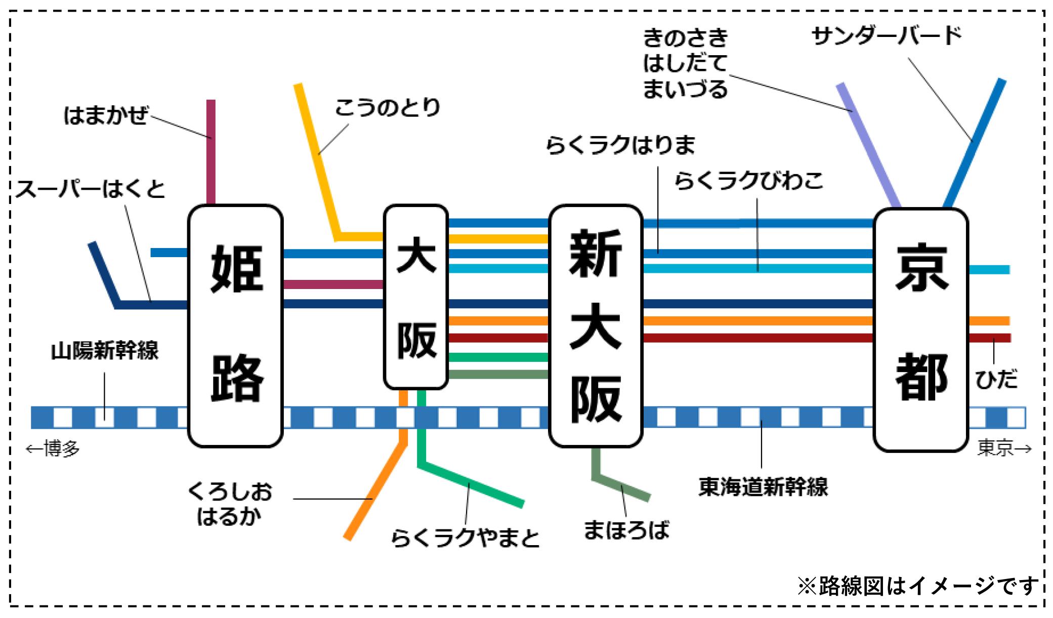 ・在来線特急:姫路・新大阪・京都発着の区間