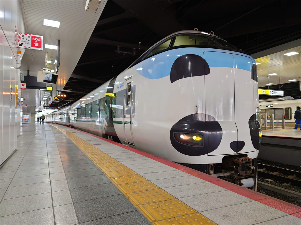 ▲新大阪駅に停車中の特急「くろしお」283系(上)、287系パンダくろしお(下)。