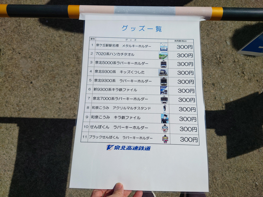 このうち、泉北高速鉄道の列がやたらと長かったので、よく見てみたら、「グッズ割引販売」が実施されていました。