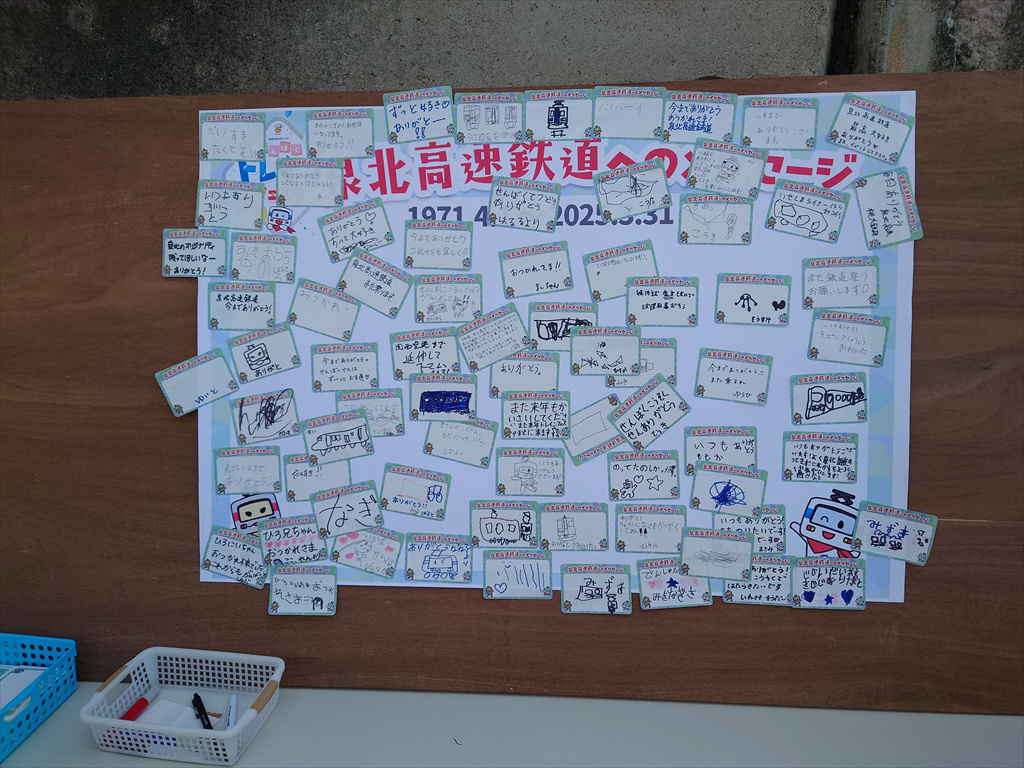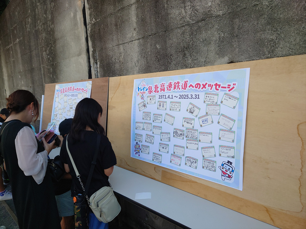 上述のとおり、泉北高速鉄道としては最後の開催となること、そして今年度をもって会社消滅が確定していることもあってか、来場者がメッセージを送るコーナーとなっていました。