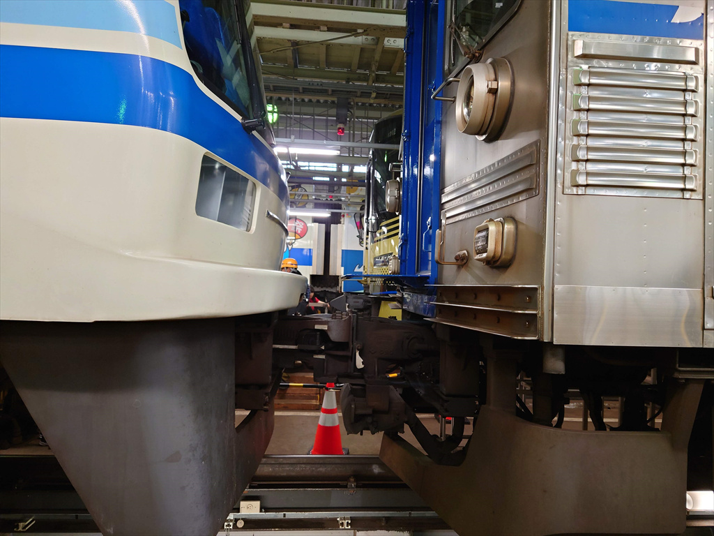 ピット内を歩いていると、3000系と5000系が連結しているシーンに遭遇しました。