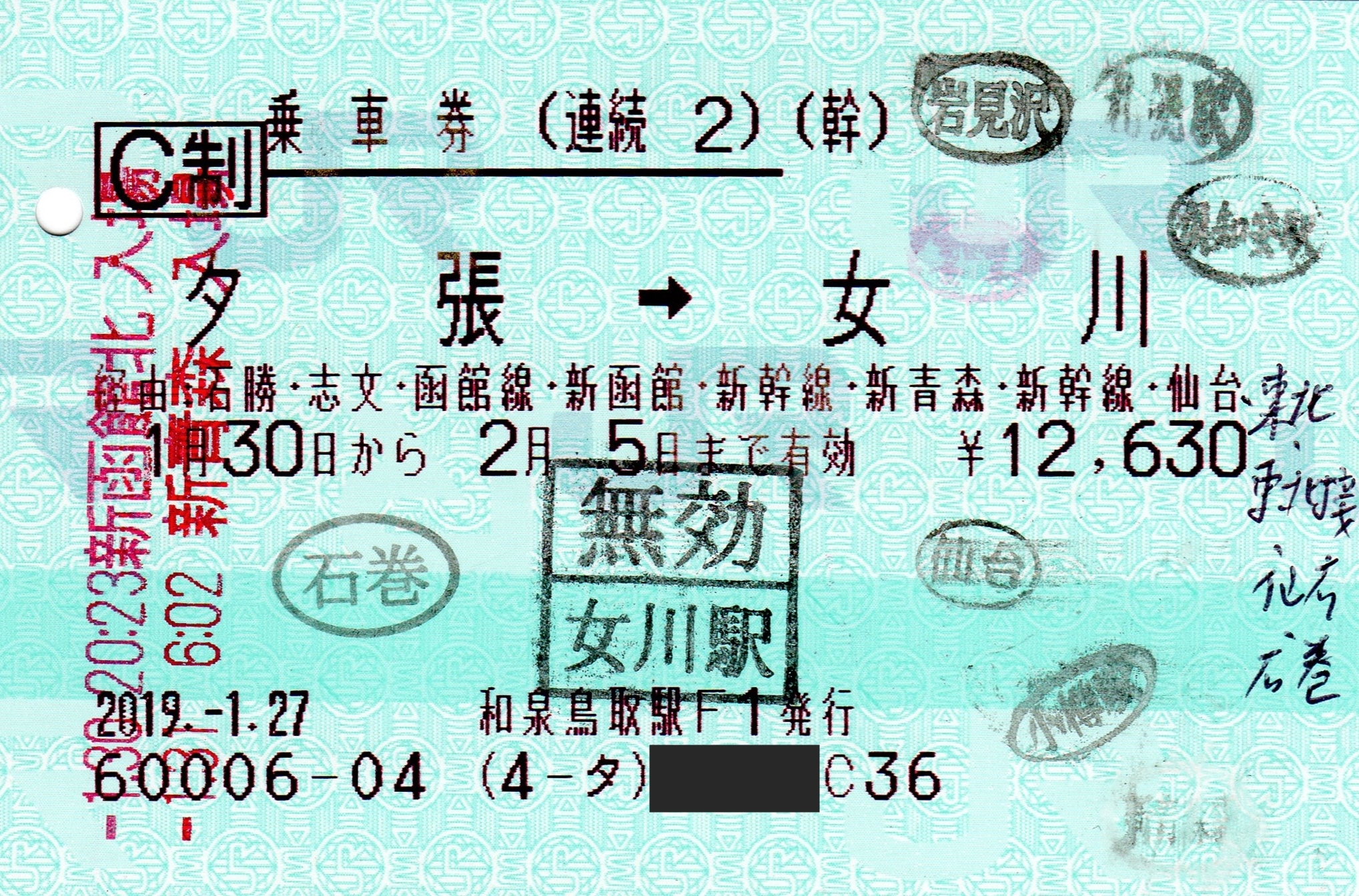 ▲苫小牧⇒夕張、夕張⇒女川の連続乗車券。