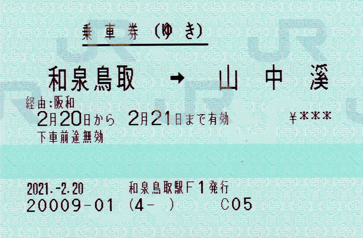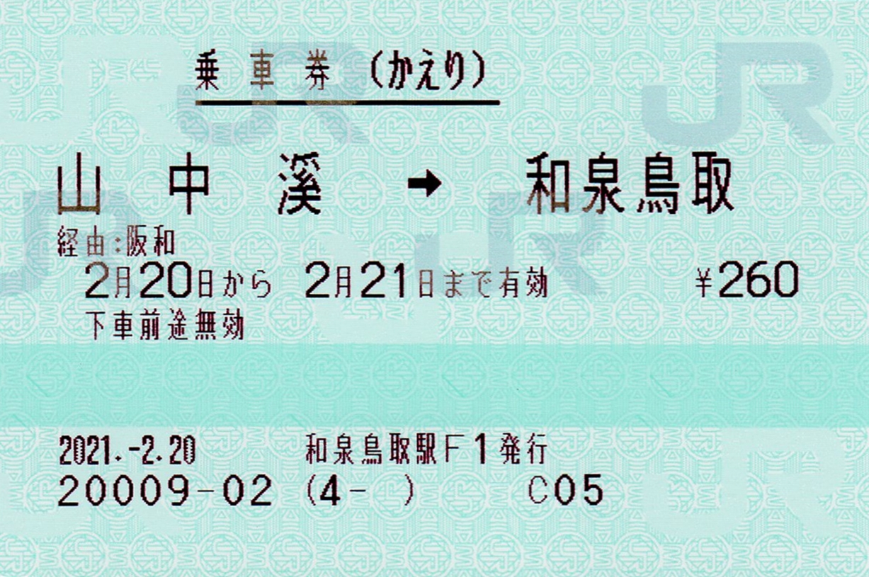 連続乗車券は、上述のとおり実使用のきっぷが手元に残っているのですが、単純な往復乗車券はあまり実使用することが無いようで、このように和泉鳥取駅「みどりの窓口」終了間際に、記念に購入したきっぷなど、実使用を伴わない購入が手元に残っています。