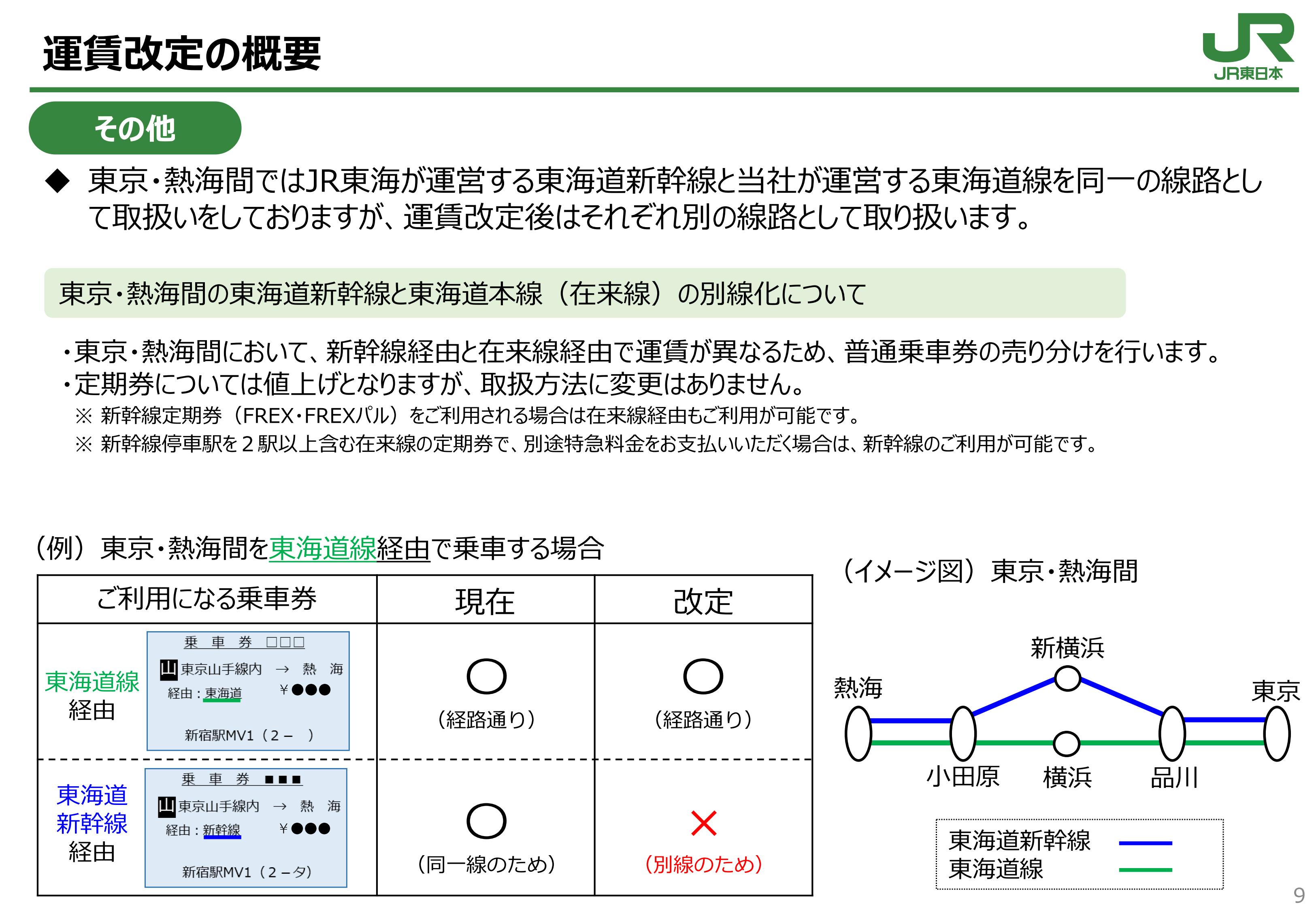 ・東京・熱海間の東海道新幹線(JR東海)と東海道線(JR東日本)の同一路線での取り扱いを廃止