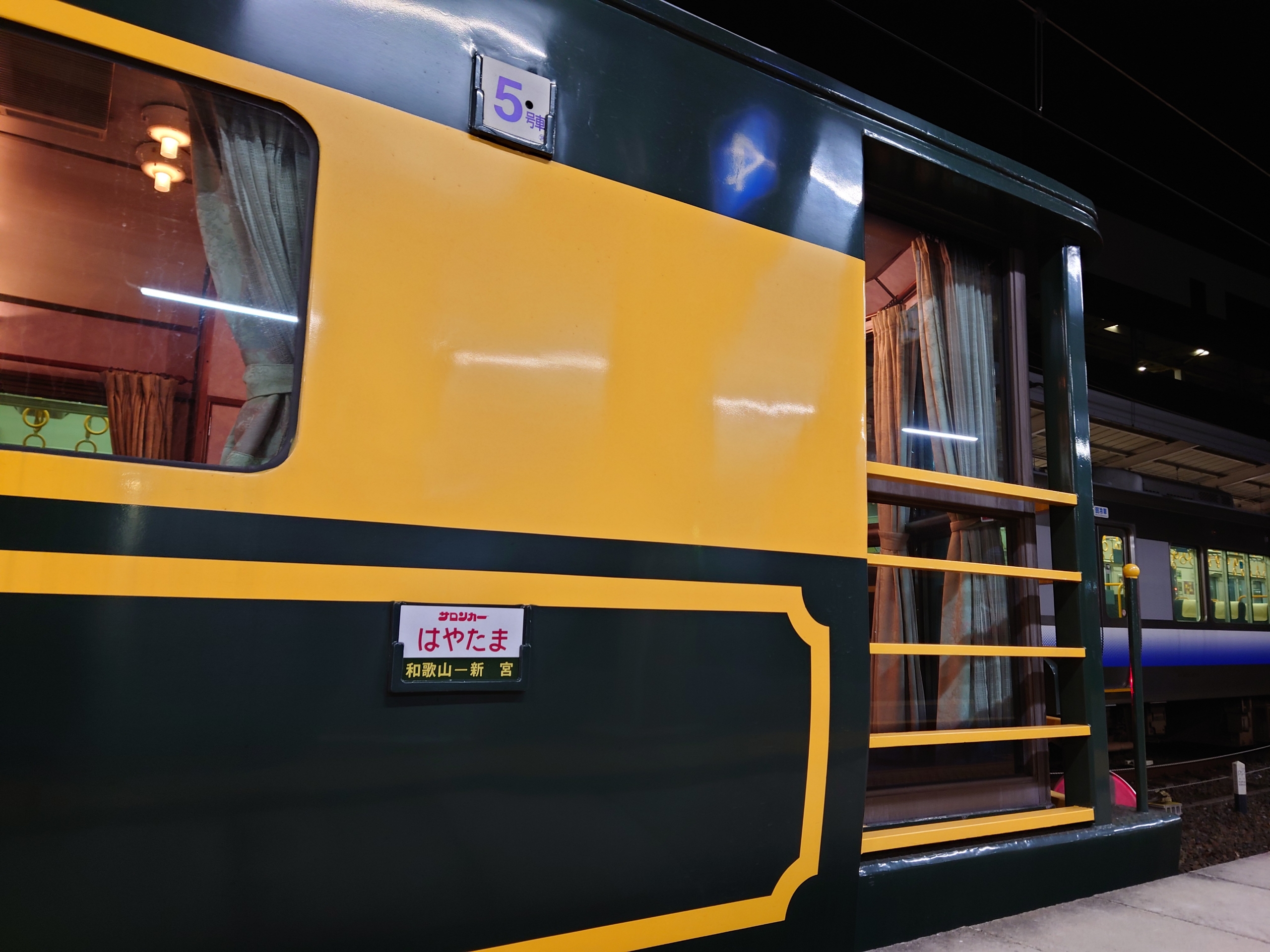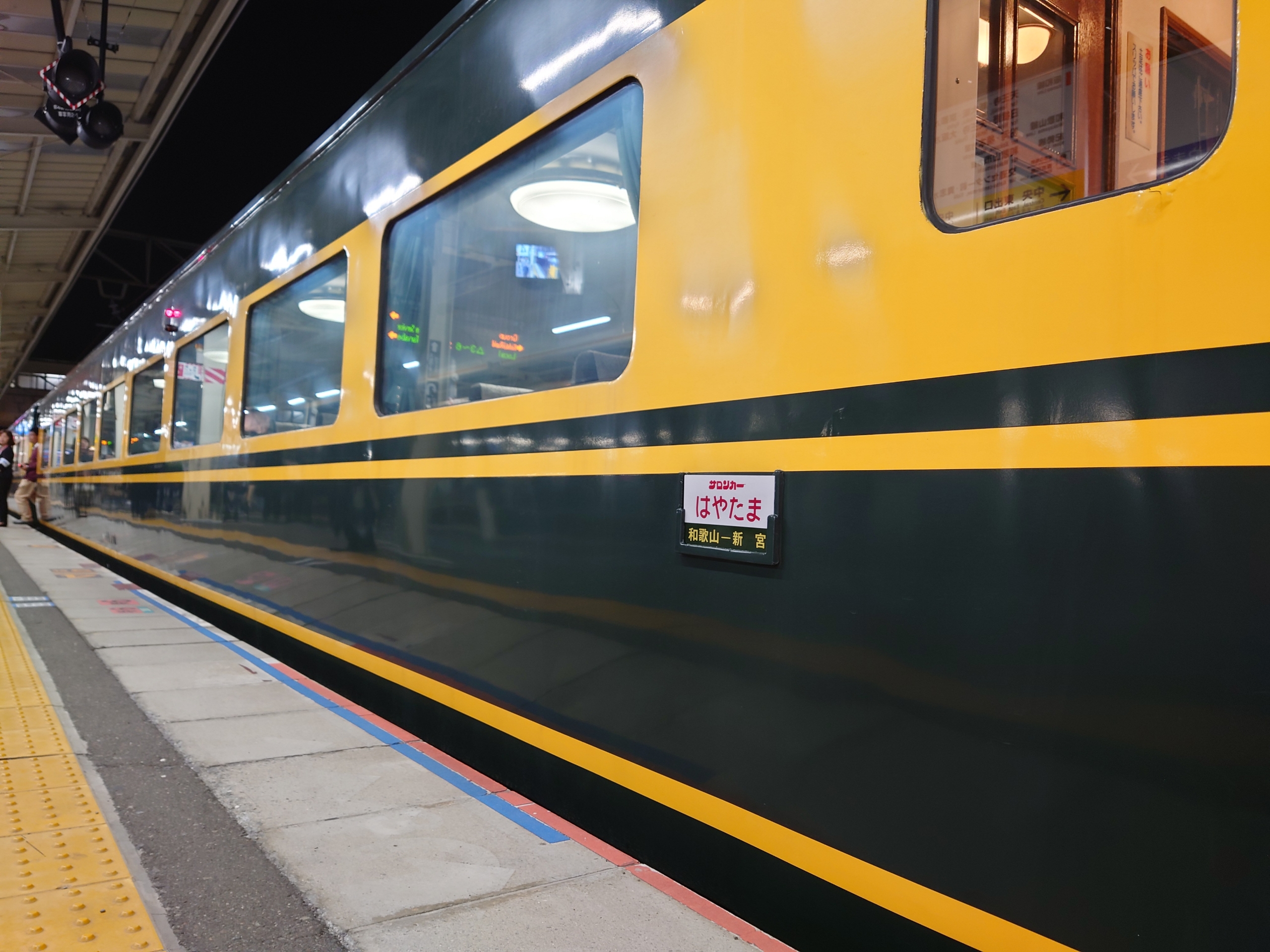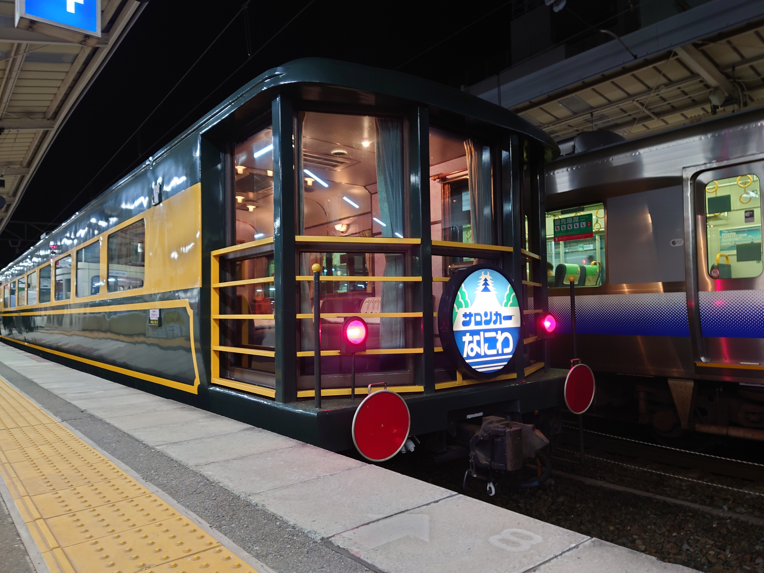 今日も忙しくて少し遅めの帰宅で和歌山駅にやってきたら、やたらと大きいエンジンの音がしたので!?!と思ってホームをみてみたら、「サロンカーなにわ」団体臨時列車が停車していました。