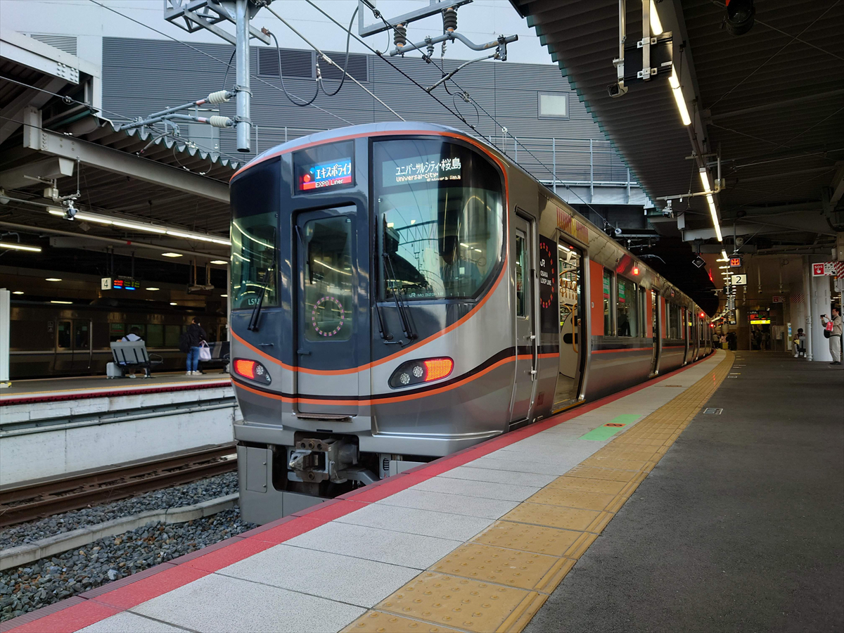 この万博会場へのアクセスの一つとして、JRゆめ咲線(桜島線)桜島駅からバスを利用するルートがあるのですが、この桜島駅へ、新大阪駅から乗り換え無しでアクセスできる快速「エキスポライナー」が運行されています。