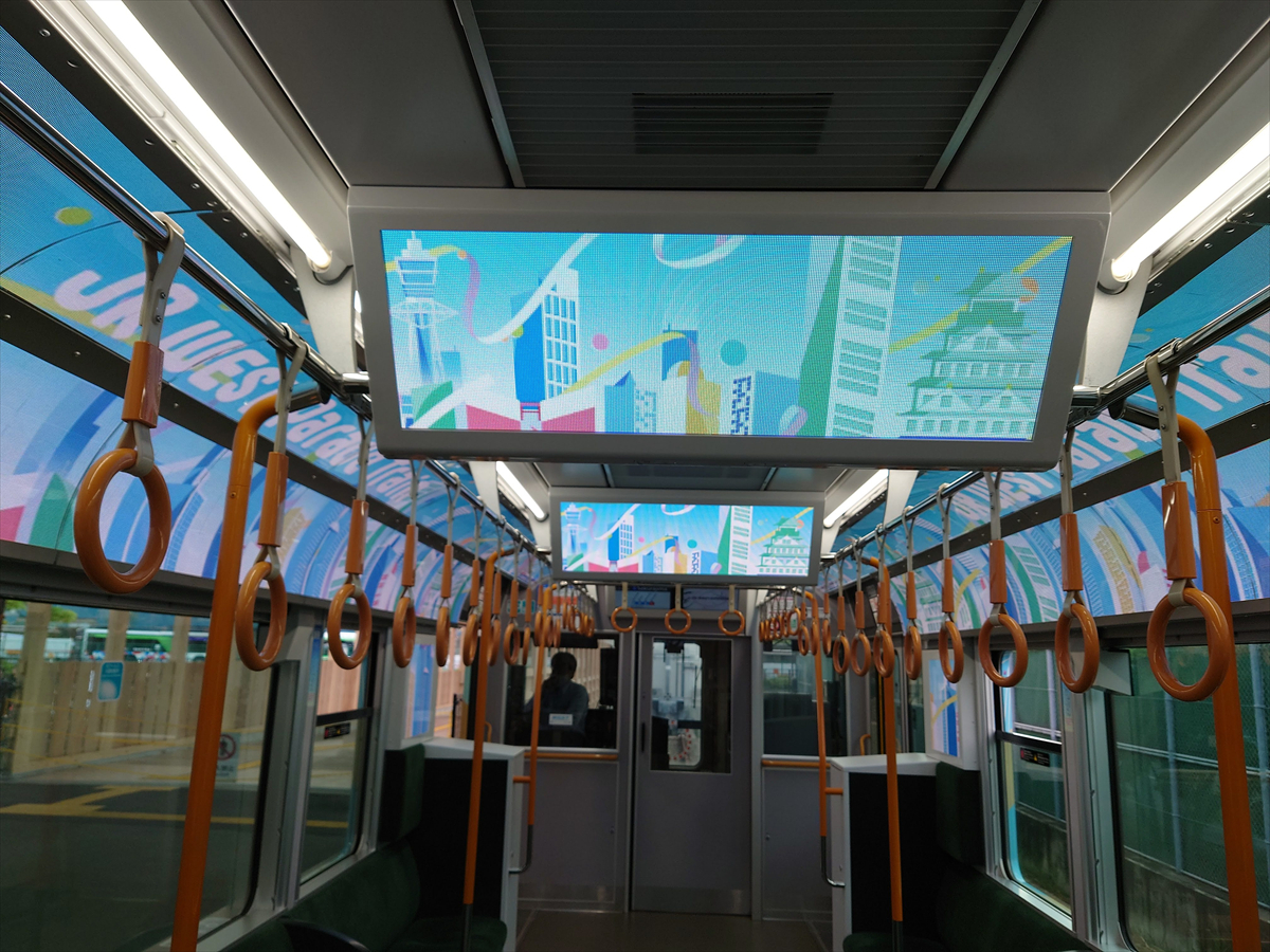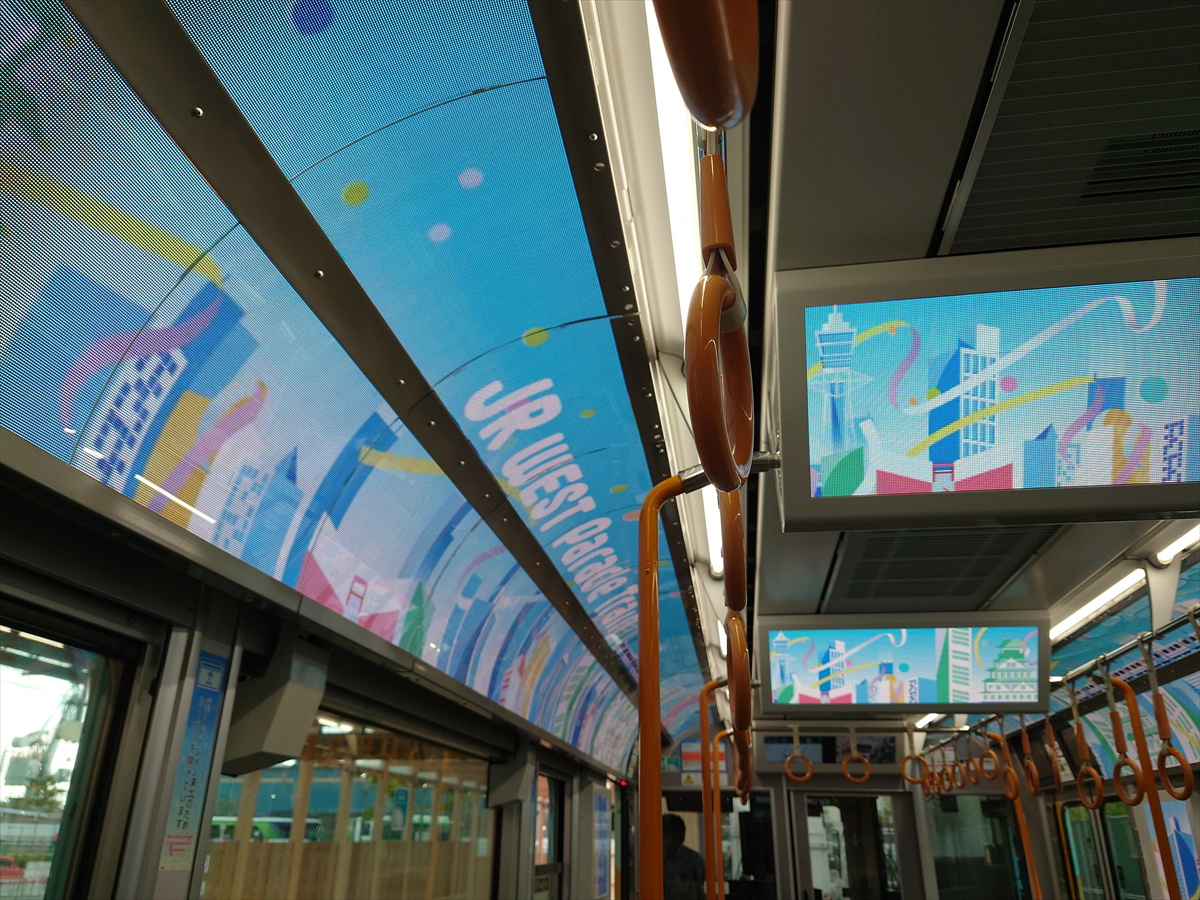 ▲「パレードトレイン」の特徴は、車内全長に渡って設置されたLEDパネル。