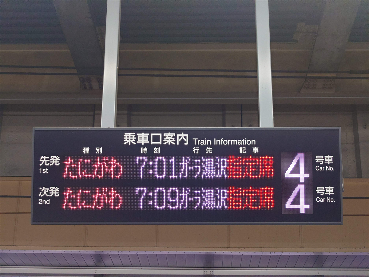 大宮から乗車しますが、次の停車駅は「越後湯沢」。