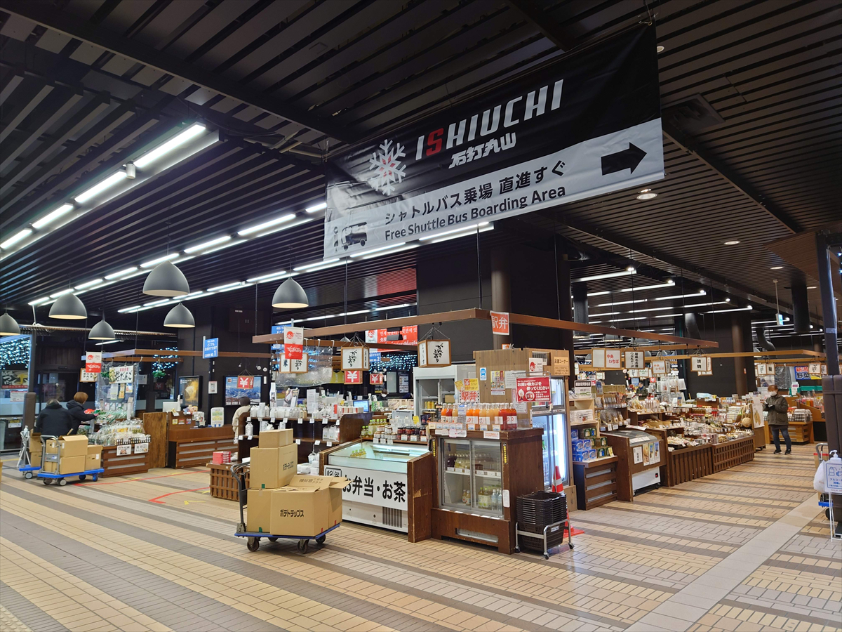 ▲越後湯沢駅では、コンコースを利用した物販店が多数並んでいました。