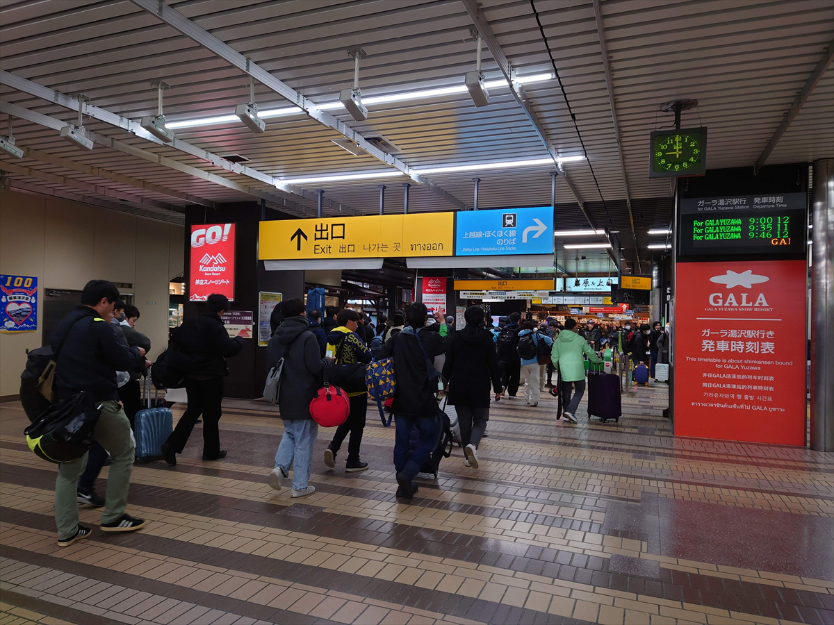 ▲この日は日曜日ということもあって、多数のスキー客が越後湯沢駅に降り立っていました。
