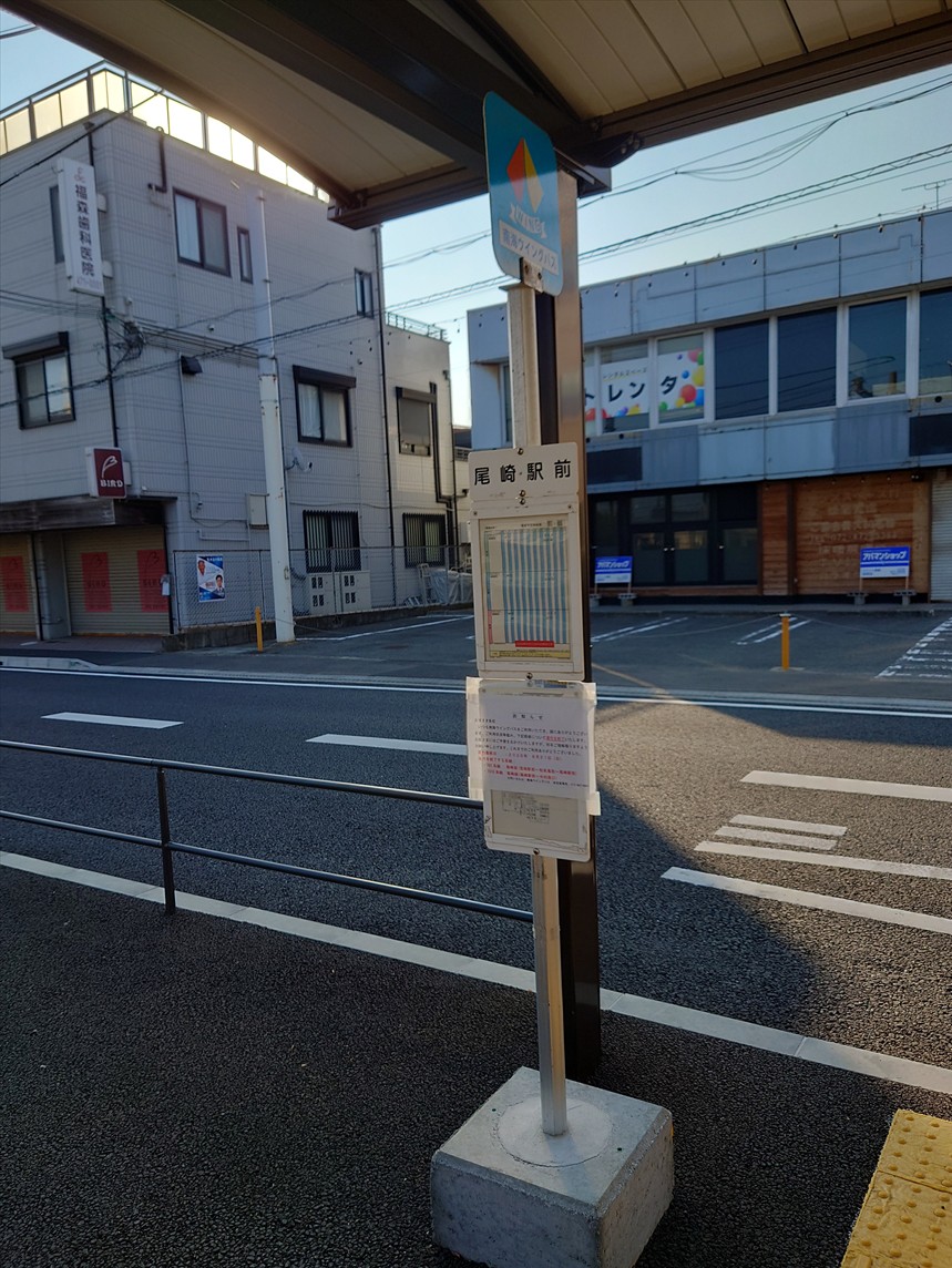 私も含めて4名の乗客を乗せて、尾崎駅前に到着します。