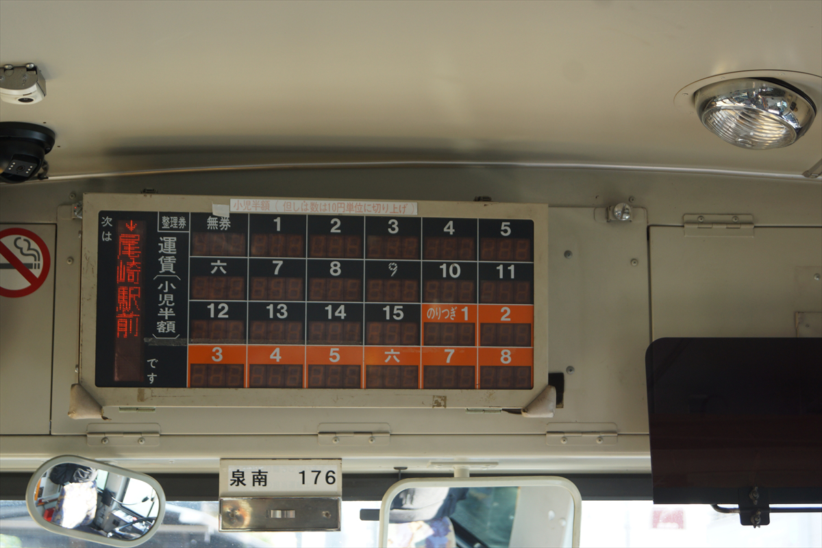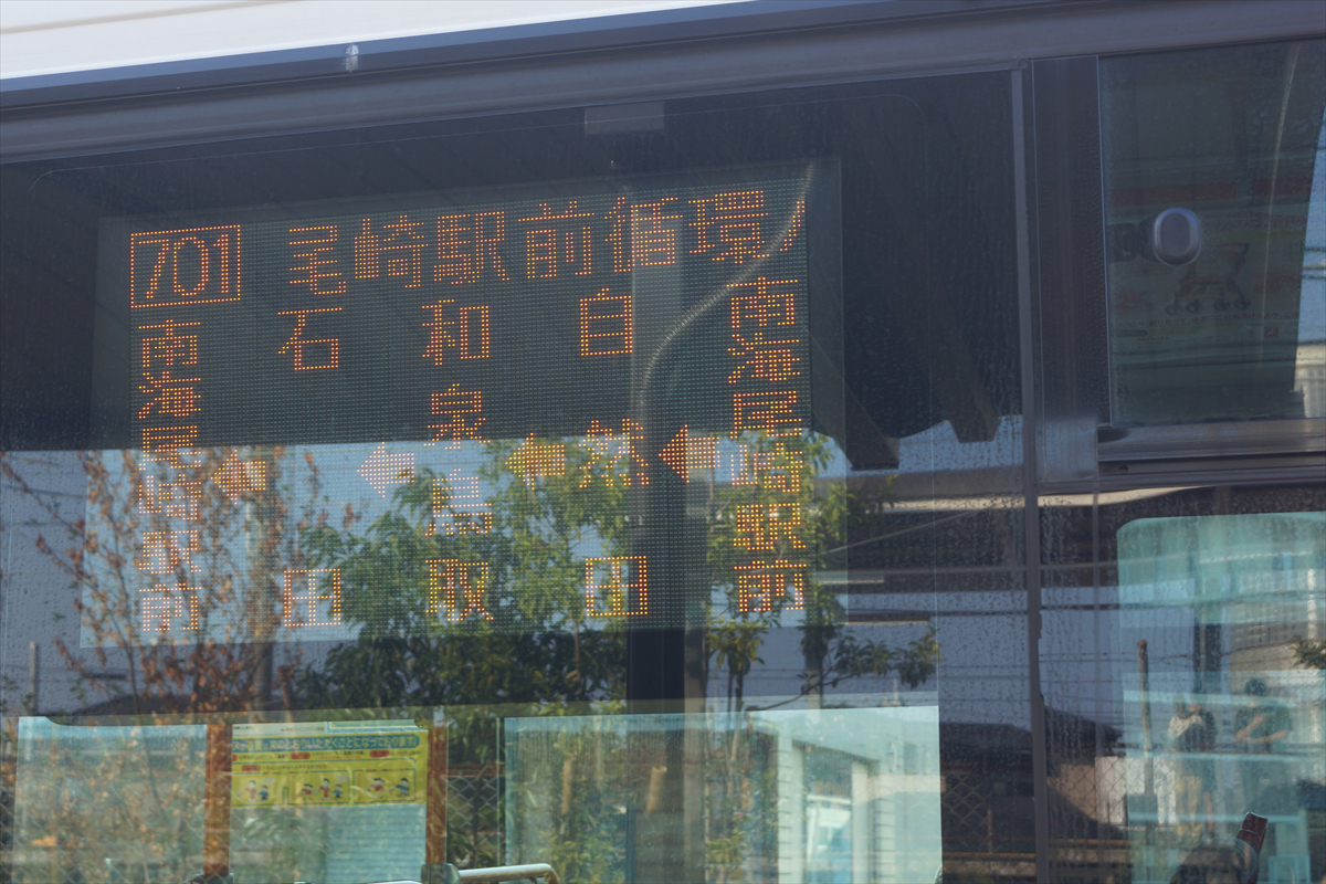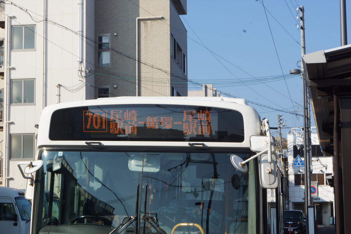 「701 尾崎駅前-循環-尾崎駅前」という、特徴的な表示が見られるのも本日限りとなります。