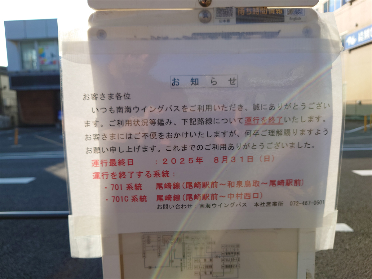 【南海ウイングバス】尾崎線の運行終了について(9月1日実施) | 南海バス