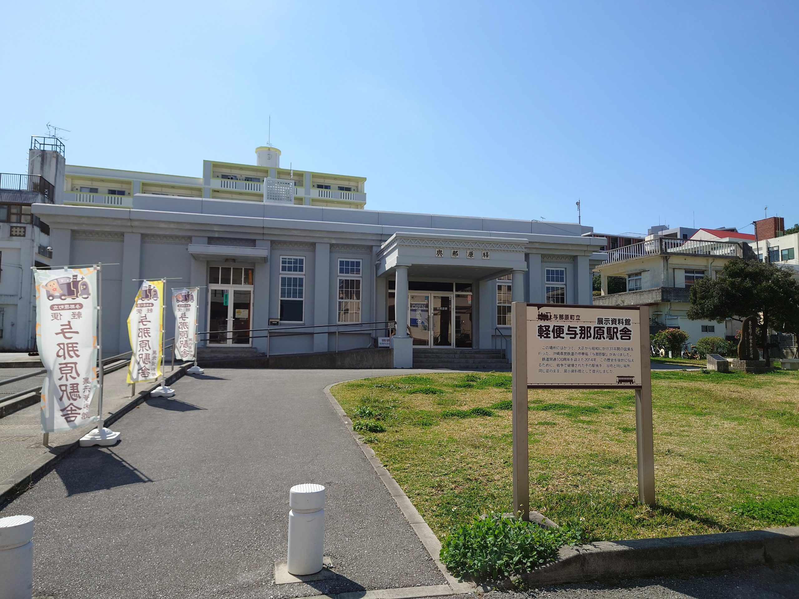 沖縄南インターから再び高速バスに乗り、県立医療センター前バス停で、路線バスに乗り継いで、与那原町役場近くにある、軽便鉄道駅舎を訪ねてみることにしました。