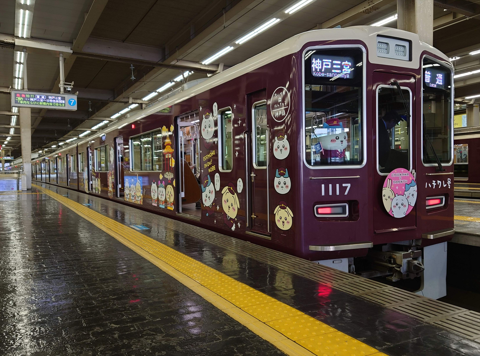 ▲阪急電鉄・大阪梅田駅に停車中の阪急神戸線「ハチワレ号」。
