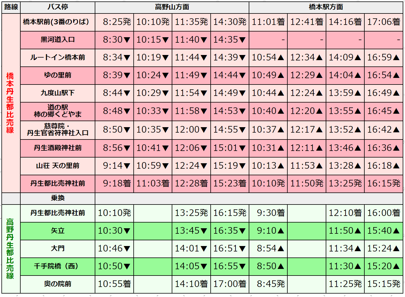 上記記事でご紹介したように、今年の運行では、新たに「ルートイン橋本前」停留所が追加され、また「高野口駅前」等を経由しなくなることから、橋本駅前〜丹生都比売神社前で15分程度のスピードアップが図られています。