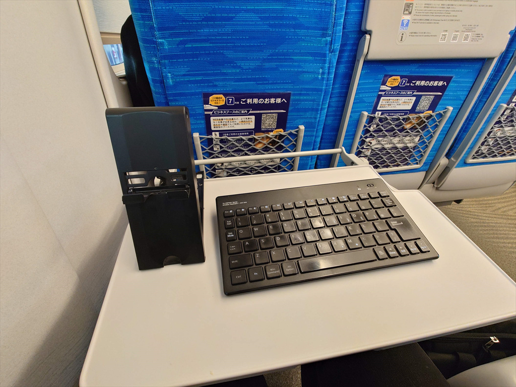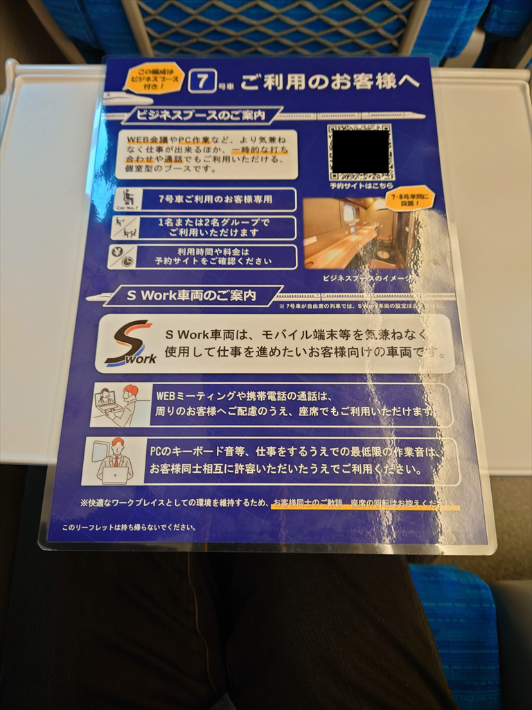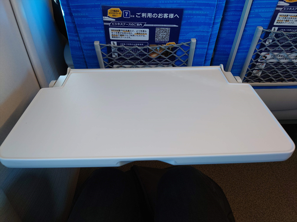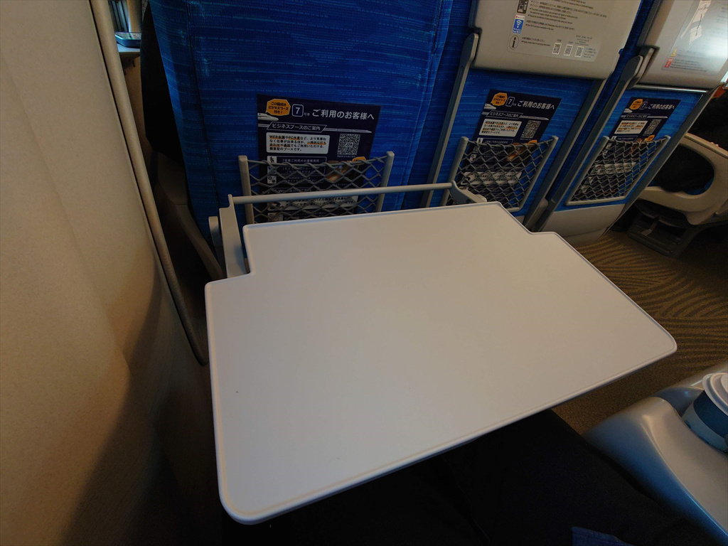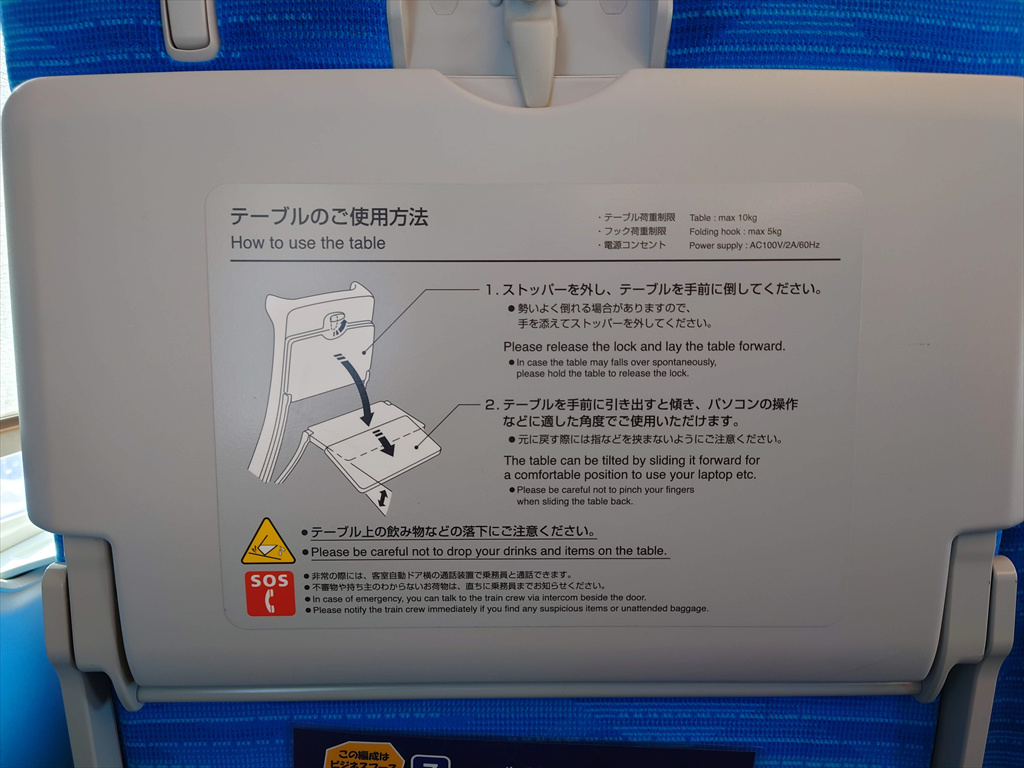▲折りたたみテーブルに記載されている車内案内